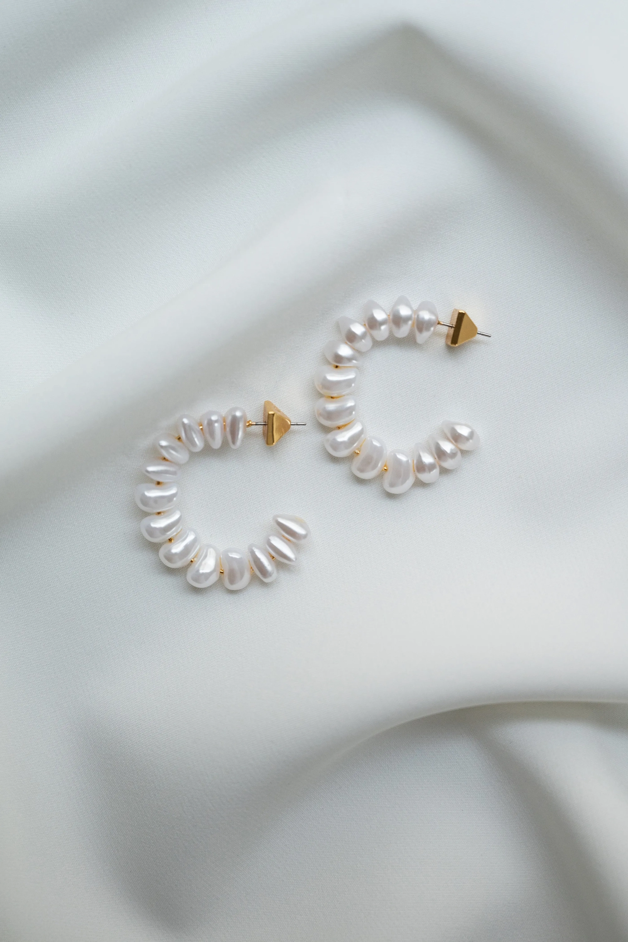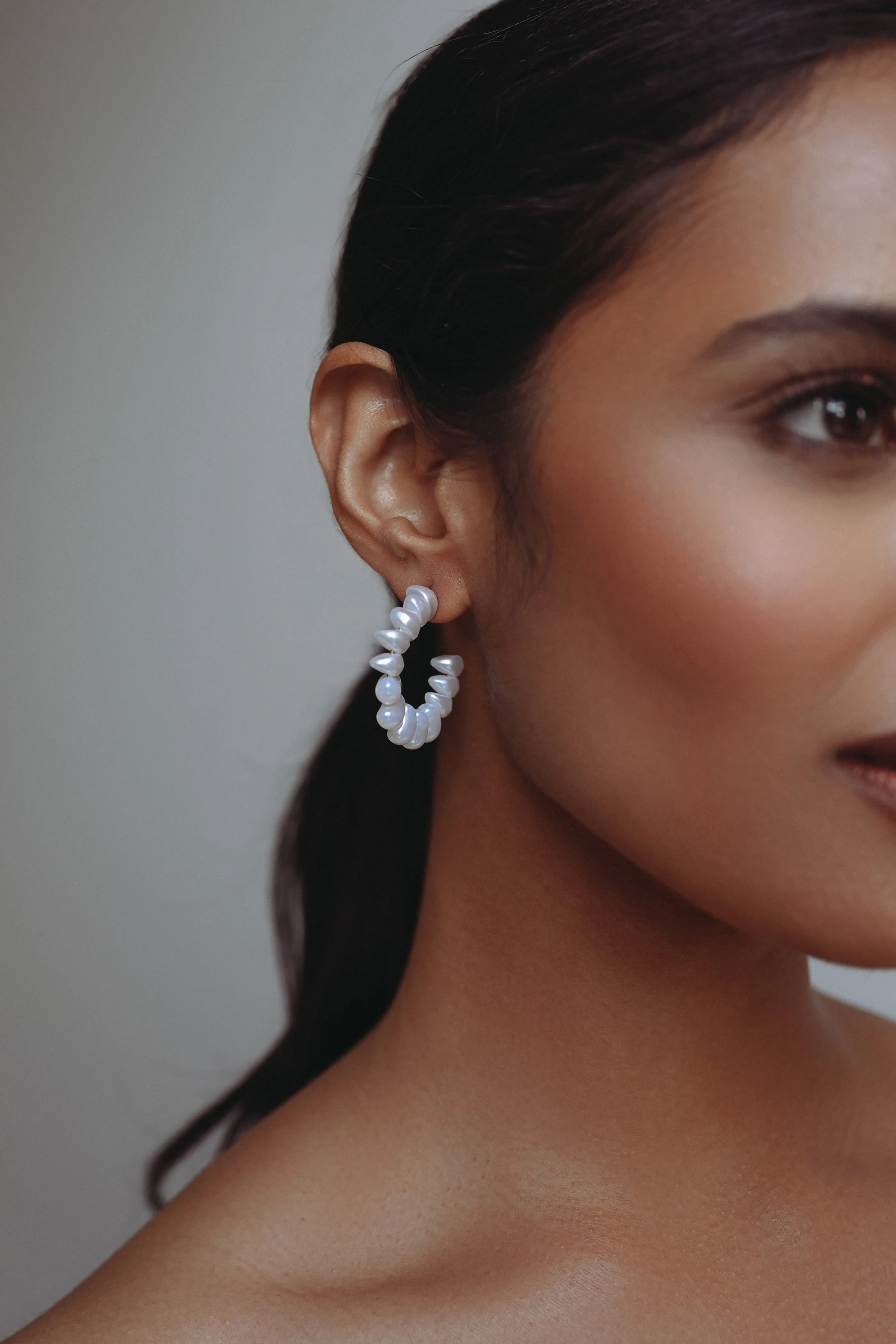 The Monaco earrings take a classic hoop and give them a bridal upgrade. Glistening pearls add just the right touch of luminosity to your favorite little white dress or bridal gown.