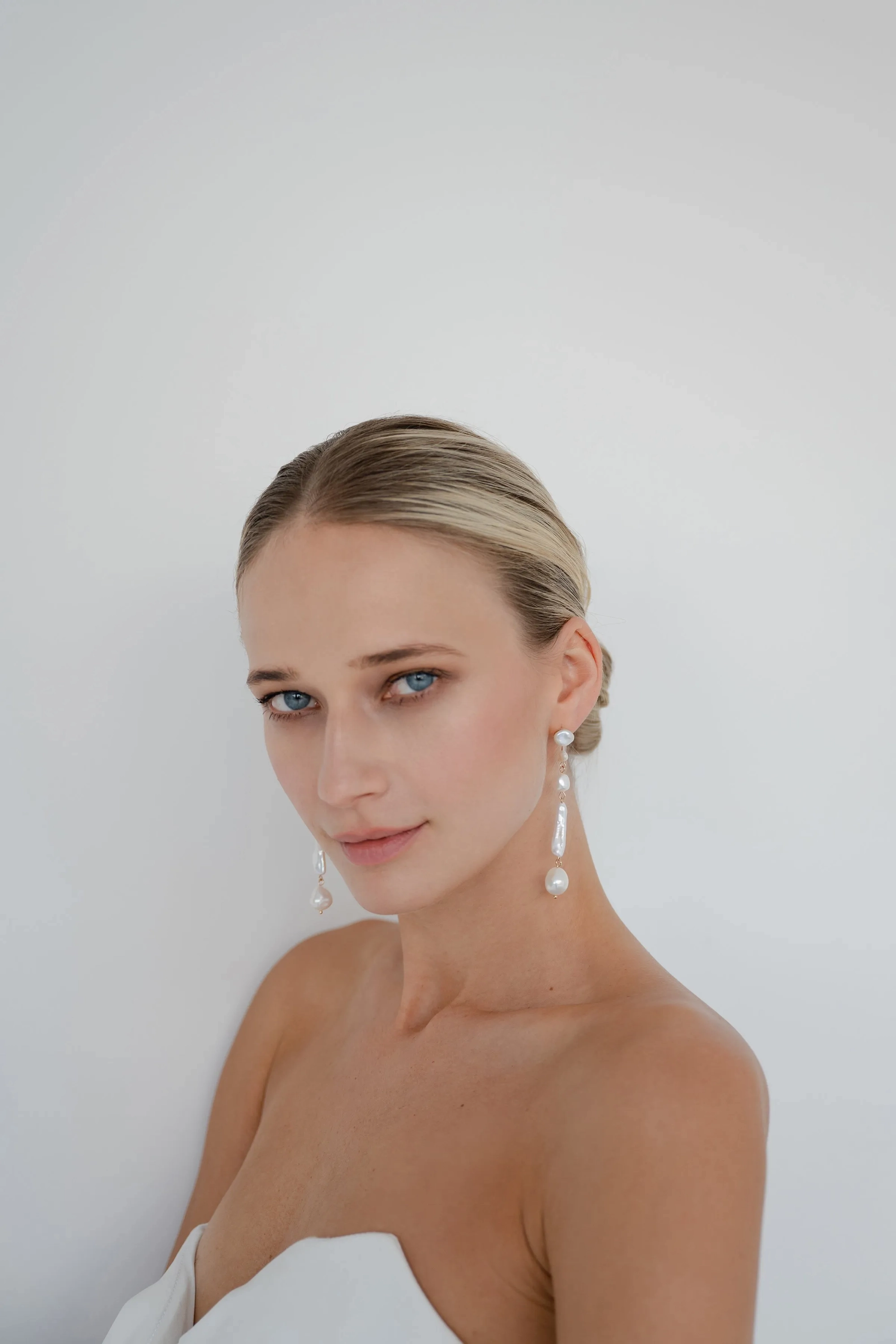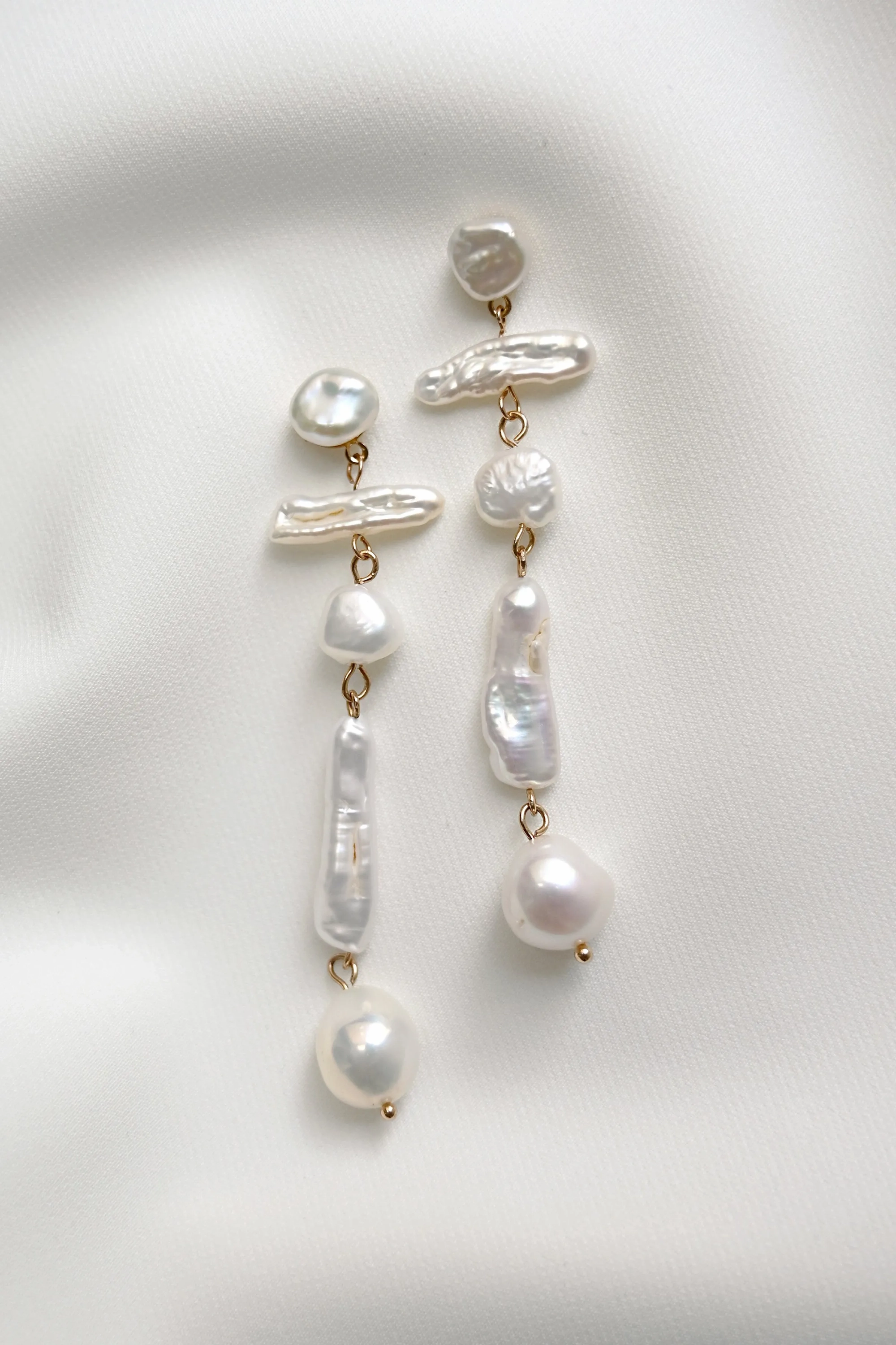 Organically shaped freshwater pearls lend a sculptural feel to the idea of a statement earring.