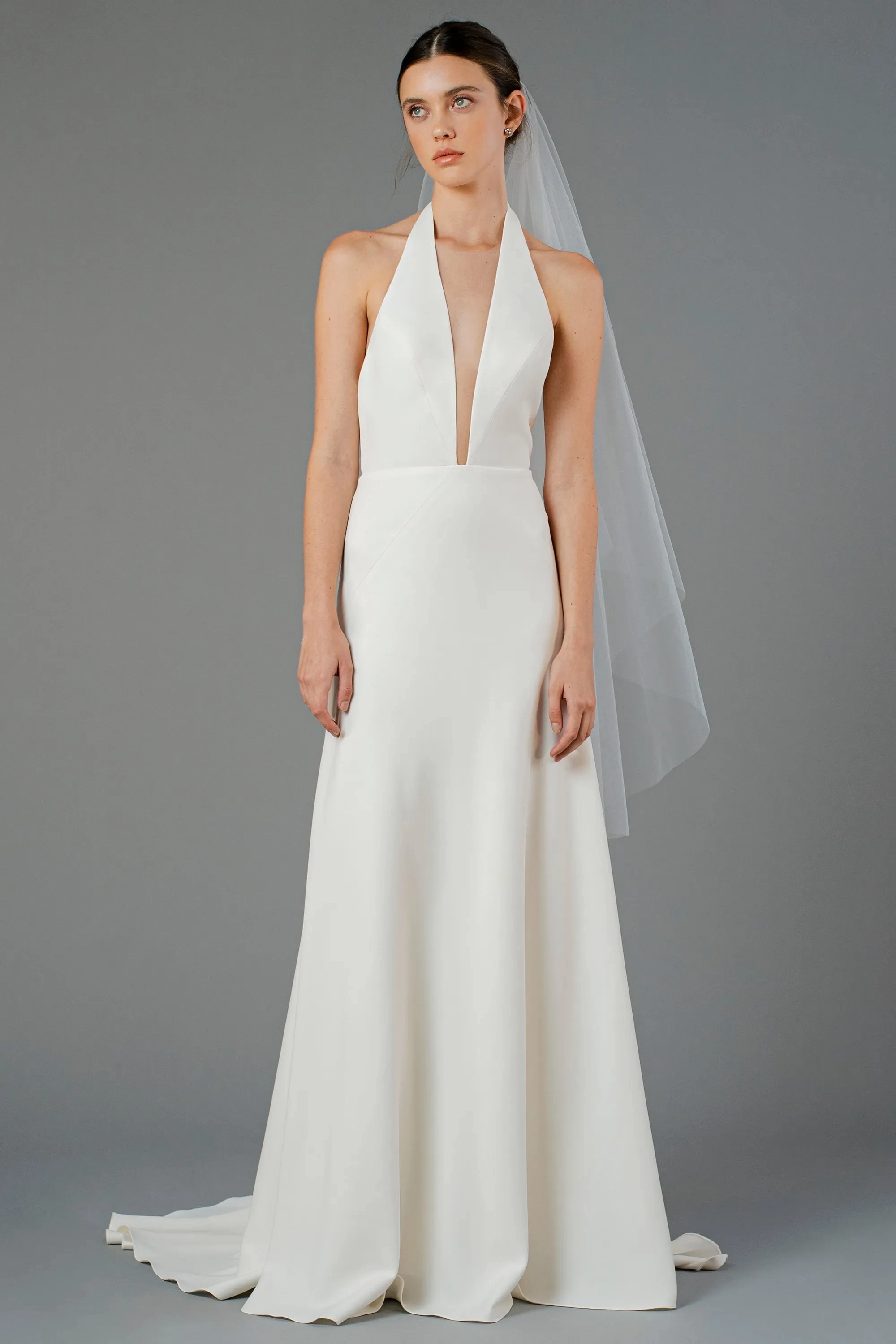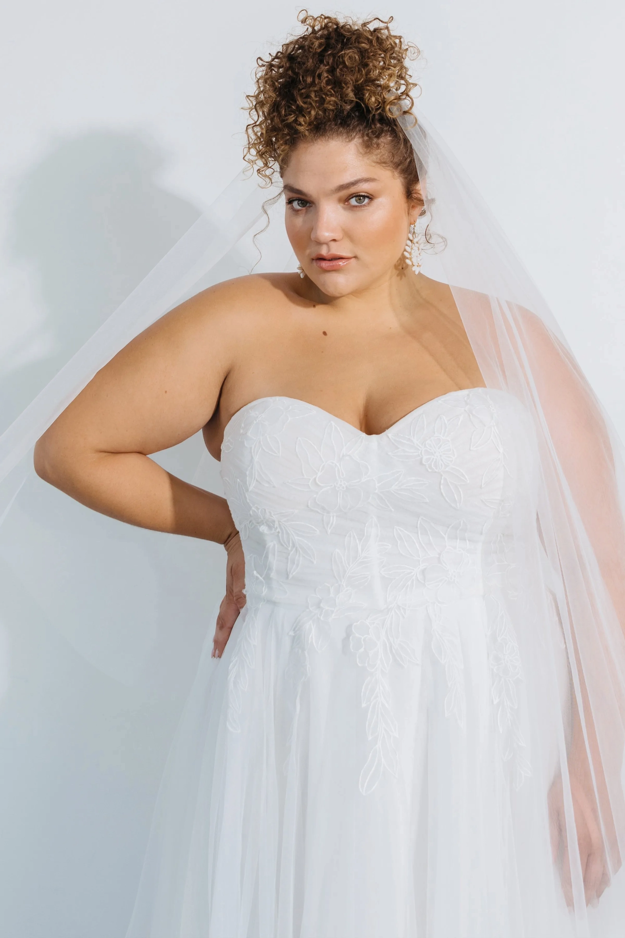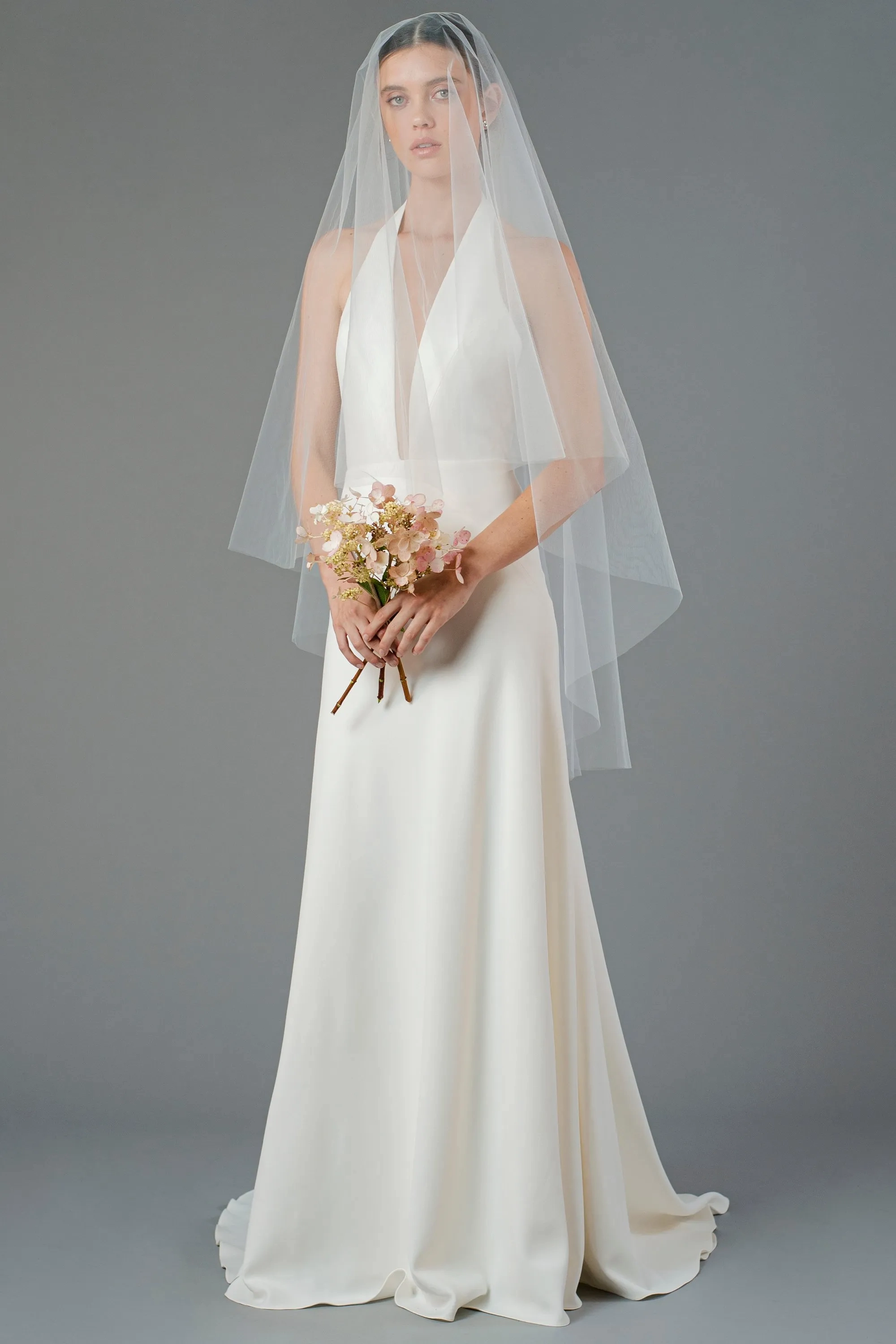 This fingertip veil is light and airy, for the simple and sophisticated bride.